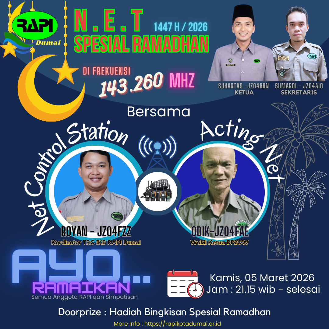 Net ini merupakan kesempatan bagi anggota untuk berkomunikasi, tukar informasi, serta mendengar pengumuman dari pengurus. Mari kita bersama-sama memeriahkan kegiatan ini sebagai bagian dari rutinitas RAPI di udara.